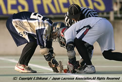 日時:2005年11月19日(土) 14:30試合開始 場所:東京・大井ふ頭海浜公園第2球技場 第18回関東学生ラクロスリーグ戦・男子FINAL4 慶應義塾大学(1部Aブロック1位) vs 一橋大学(1部Bブロック2位)