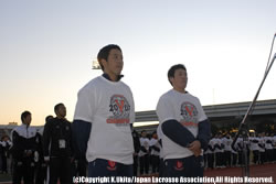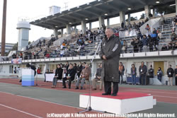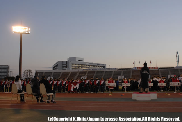 日時:2007年12月16日(日) 場所:東京・江戸川区陸上競技場 閉会式 日本ラクロス協会理事長・木村博 江戸川区長・多田正見様 <年間最優秀審判賞> ・男子:田中恵太郎 ・女子:森山さやか Photo:宇喜多紀恵