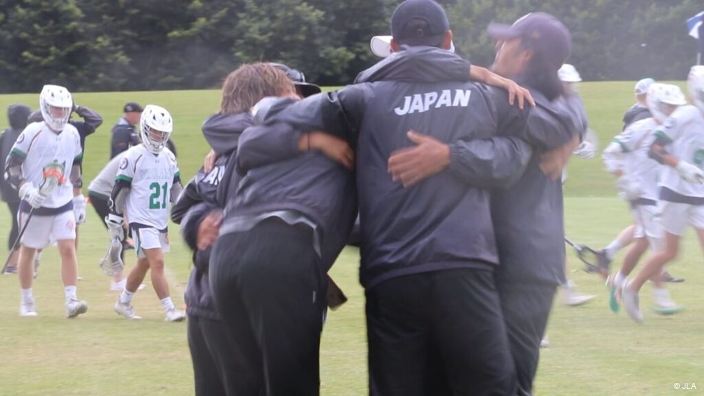 - 抱き合うコーチ・スタッフ