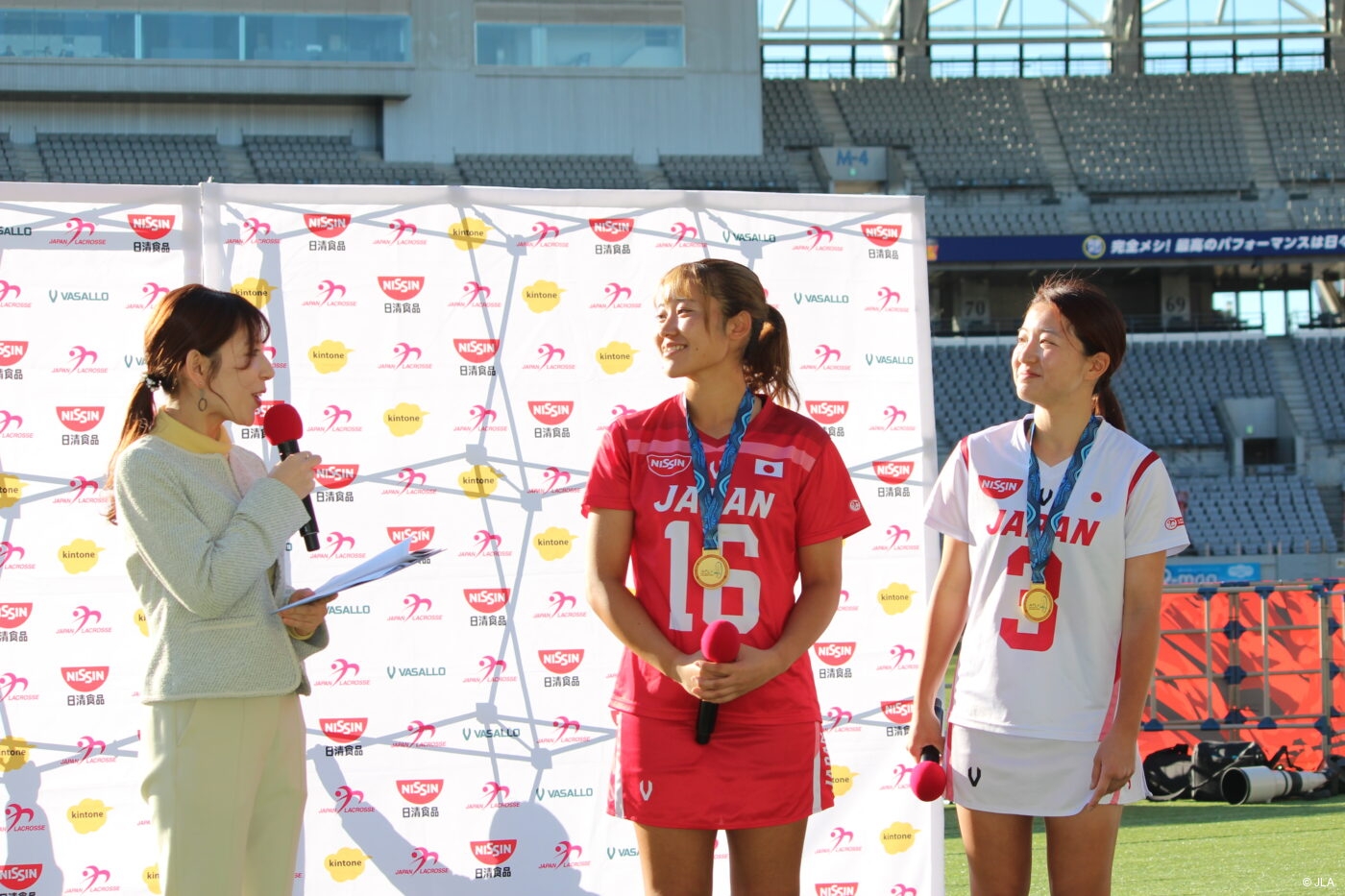 2025年1月18日(土)味の素スタジアムにて行われた日清食品presents第34回ラクロス全日本選手権大会A1の女子決勝戦のハーフタイムにて、アジアパシフィック選手権大会の活動報告を行いました。