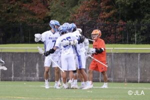 その後のオフェンスでボトムから仕掛けた#7坂上がクリースにフィード。これを#10船山が再び決めきり、スコアは4-3。その後も法政オフェンスは続き#7坂上のボトムからのまくりシュートでこの試合初となる法政の2点リードに。タイムアウトを取り悪い流れを切りたい九大だったが、その後の法政のオフェンスで#3内山が追加点を挙げ、一気に法政3点リードの展開となる。その後九大#9波多野がボトムからのフィードを決め切り1点を返し、九大ディフェンスも相手ボールマンに二人で付く攻めの戦術でボールを奪いに行くも、試合終了。最終スコアは6-4で法政が勝利した。