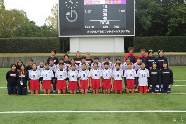 最終4Q。ドローは混戦になり、福大がとるも明治のゴーリーに阻まれ、明治はその後のクリアで パスがつながり、明治のショットが入った。ドローは明治が取ることが多くなるも、福大は明治が ボールダウンしたところを奪い、明治のファールを誘い、福大#1牧野のショットがきまる。この傾きかけたを流れに乗って反撃したい福大はその後のドローを取り、パスをつなぎ#30田代のショットが 決まる。福大が2点連続でショットを決めたのに対し、明治はタイムアウトを取り、福大に傾きかける流れを断ち切ろうとする。タイムアウト後明治は福大のファールを誘い、フリシューで得点を重 ね、点差を開いていく。その後福大も反撃をしようと果敢に攻めるも得点ならず、試合終了。最終 スコアは16-4で明治が勝利した。
